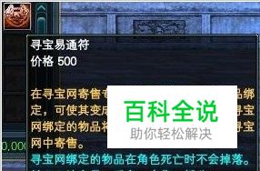 一、寻宝易通符 寻宝易通符,比原有的“天人合一符”功能更加强大,玩家使用该道具可在寻宝寄售专员处选择使用此符将一件物品绑定,使其成为寻宝网绑定状态。处于寻宝网绑定的物品将天人合一,绑定后该物品在角色死亡时不会掉落。(此道具只可与未天人合一的物品上进行绑定,绑定后的物品可在寻宝网交易,且绑定属性不会消失,已天人合一的装备无法用此道具绑定)