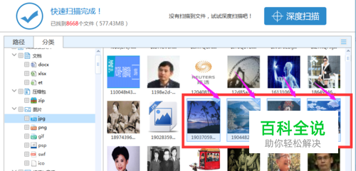 扫描结束我们直接点路径快速找到图片这一栏,然后找到去寻找我们需要恢复的照片。