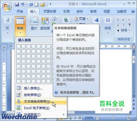 怎样在Word2007文档中将文字转换成表格