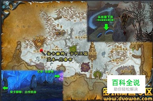 位于尼鲁布蛛魔古王国底部的安卡赫特,有另一群被称为无面者的敌人正蠢蠢欲动。 世人对这群骇人的生物几乎一无所知,但一般认为他们听命于一股潜伏于诺森德地底的邪恶力量。但若想收复陷落的蛛魔帝国,除了对抗巫妖王的天灾军团外,还必须消灭神秘的无面者。安卡赫特·古代王国算是一个比较难的副本,每个boss都有特色。在装备积累期此副本很容易导致团灭,即使装备碾压的时候,也有可能因意外翻船,所以在古代王国,耐心和谨慎是不不可少的。BOSS死后对面会出现通道,穿过蜘蛛洞就被传送回纳尔苏深渊。