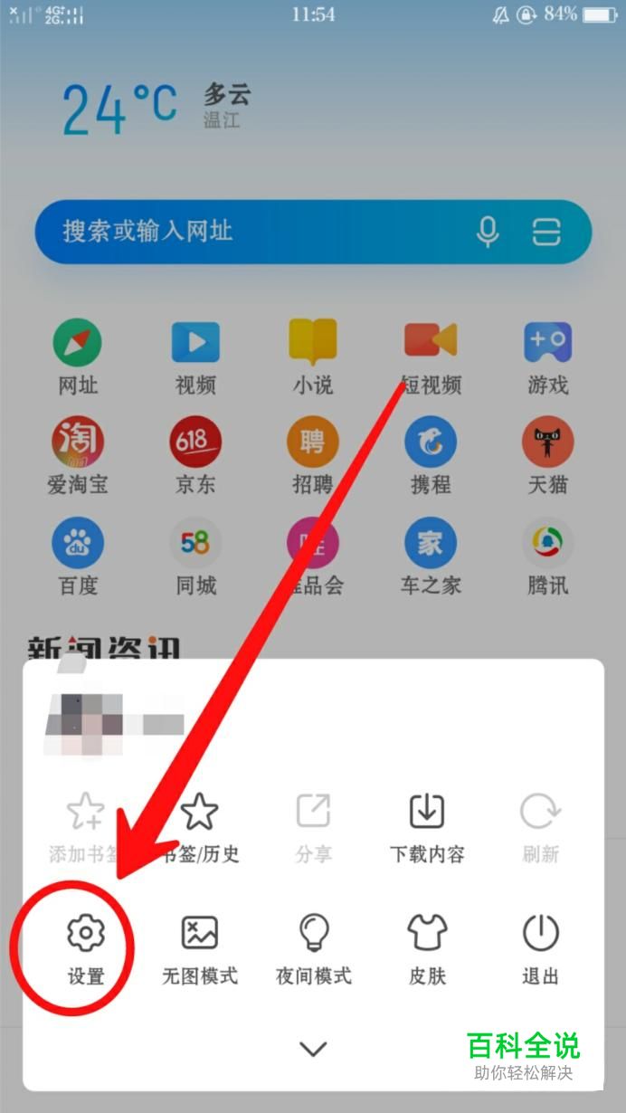 打开浏览器,点击设置