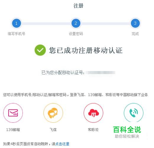 接着就会显示注册成功,为你飞配一个移动认证号。