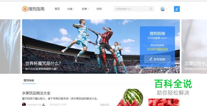打开浏览器,打开需要转换为pdf格式的网页,以搜狗指南首页为例,如图所示。