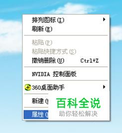 在桌面空白处右键单击,在弹出的菜单里选择“属性”。