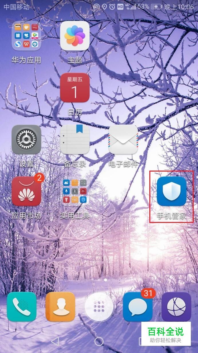 华为手机都是自带手机管家,如图,点击手机管家。