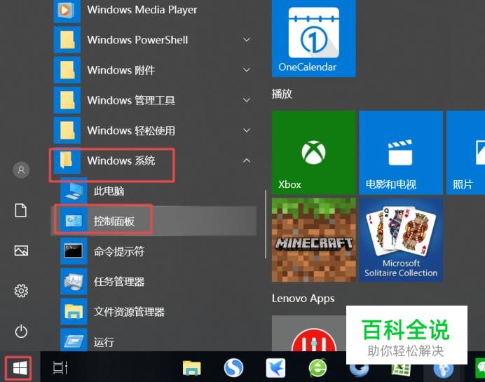 首先,我们点击电脑左下角的微软按钮,弹出的界面,我们下滑中间的界面,然后找到Windows系统,点击打开它,弹出的界面,我们点击控制面板;