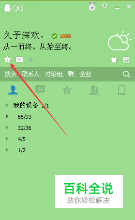打开QQ面板,点击小星星空间图标,进入空间。