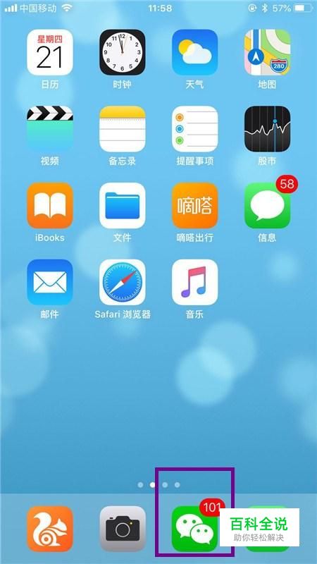 首先在我们的手机桌面上找到微信并点击它,如下图所示。