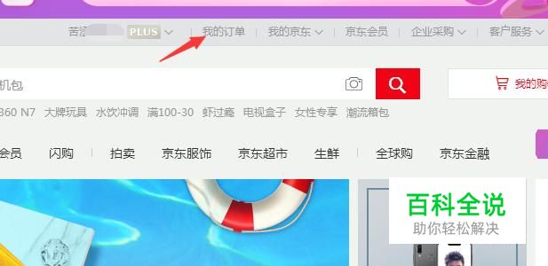 首先我们打开京东商城登录账号后点击上方 状态栏的“我的订单”。