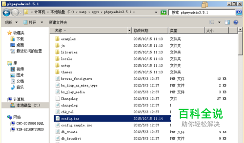 二、设置数据库登录窗口。 假如你按照上面设置了数据库的密码,你会惊讶的发现无法登录localhost/phpmyadmin/,因为密码错误,无法访问! 这时你只需进入你网站的根目录找到config.inc.php 路径如下图,可能会因为数据库的版本不同而跟我的phpmyadmin3.5.1的版本不一样,不过没关系,认准phpmyadmin这个前缀的文件夹就可以找到 config.inc.php(我图里是因为 文件后缀名隐藏了,所以只看到config.inc)。 打开config.inc.php这个文件,找到 $cfg['Servers'][$i]['auth_type'] = 'config'; 把这个config 改成http就行了。 然后登陆localhost/phpmyadmin/,你会发现多了个登陆框(如下图)。 这是你只需要输入你的账号root跟密码就可以了。