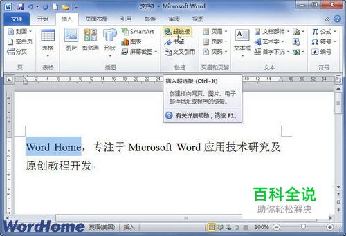 在Word2010中设置超链接屏幕提示文字