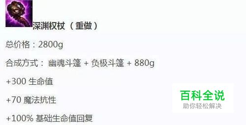 深渊权杖在测试服中的改动直接将其合成路线以及面板提供属性都改成了当前版本女妖面纱一样的,但是被动和10%的冷却缩减属性却被保留了下来。这样一来深渊便成了坦克可选择的魔抗防御装之一,但由于其被动技能的缘故,所以这件装备通常会在己方输出位主要以魔法输出为主的阵容时出现。