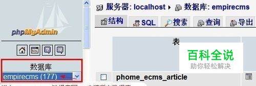 1.首先登陆到phpmyadmin,找到帝国CMS数据库名empirecms,如下图: