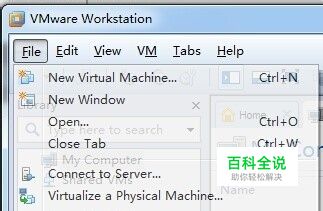 假设已经在Win7上安装了VMware station 9.0软件,打开VMware。选择"File"中的"New virtual Machine..."