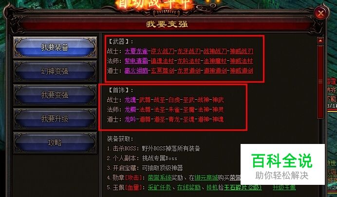 在9377雷霆之怒网页游戏里,装备是影响玩家战斗力水平的主要因素,玩家常常会因装备的问题而困恼。玩家想获得各种高端装备,就必须对装备等级有所了解,不然获得的装备好不好还不知道。那雷霆之怒装备等级如何划分呢?小编就为大家详细分析一下吧。 雷霆之怒装备大致分为两类,分别为武器和首饰,其中首饰包括衣服、手镯、戒指、腰带、头盔、项链、靴子。按颜色来区分装备低高的话,依次是紫色、绿色、粉红色、红色。由于职业的差别存在,故每个职业都有自身特有的一些武器和首饰套装。雷霆之怒各职业的装备等级划分如下: 战士武器:雷霆刃-卧龙-大夏龙雀-逆火战刀-龙牙战刃-战神战刀-神威战刃; 法师武器:追魂杖-栖凤-紫电清霜-镇魂法杖-龙吟法杖-法神魔杖-神威法杖; 道士武器:阴风剑-毒冥-离火翎扇-玄冥尊剑-龙灵道剑-道神道剑-神威道剑; 战士首饰:修罗-疾风-赤焰-孤月-龙魂-武尊-战圣-白虎-圣武-战神-神武; 法师首饰:邪灵-精灵-寒冰-冷月-龙鳞-法尊-法圣-朱雀-圣魔-法神-神灵; 道士首饰:勾魂-五玄-青冥-皓月-龙吟-道尊-道圣-青龙-圣魂-道神-神魂; 玩家需要获得这些装备,可以通过挑战单人副本、boss等,会有几率掉落各种职业的装备。玩家还能通过宝箱系统挖宝,会有几率掉落各种极品装备、珍稀道具,挖宝所积累的宝藏积分,还能找福利官兑换各种高级装备。