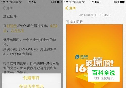 更为智能的备忘录: 如果说以前的备忘录是TXT,iOS8中的备忘录就是Word。通过体验,我们发现,备忘录的日期可自动变成链接,并且支持多种日期格式,点击即可对它“创建事件”“在日历中显示”“拷贝”,非常方便贴心。不仅如此,备忘中能够添加图片。此外,目前备忘录能够支持分享到微博、腾讯微博等第三方程序中。