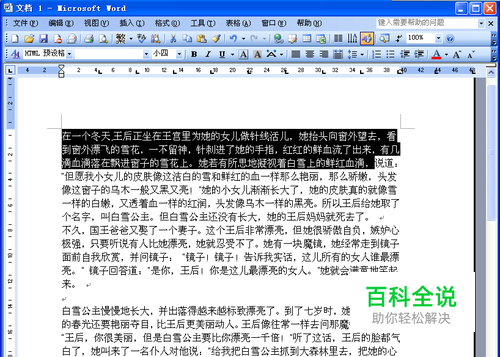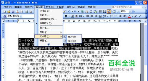 打开Word2003文档窗口,选中需要设置为文本框的内容。