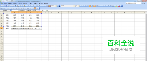 1、对带单位的数字求和,主要是利用SUMPRODUCT函数,在要求和的单元格中输入公式,按"Enter"键,即可,如图所示。