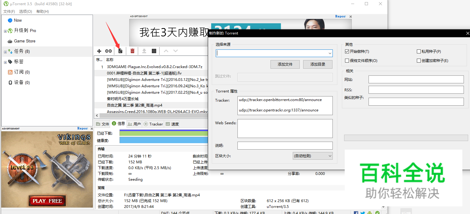 点击创建,等待做种结束就可以得到你所做的文件的种子了。然后就可以上传到想上传的论坛上进行分享了。