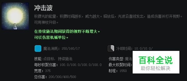 冲击波是光法聚集一团能量后向前方发射,对所有接触到的单位造成伤害。