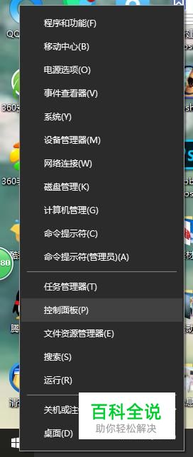 可以在电源选项中启用和关闭快速启动,右击开始菜单,选择控制面板。