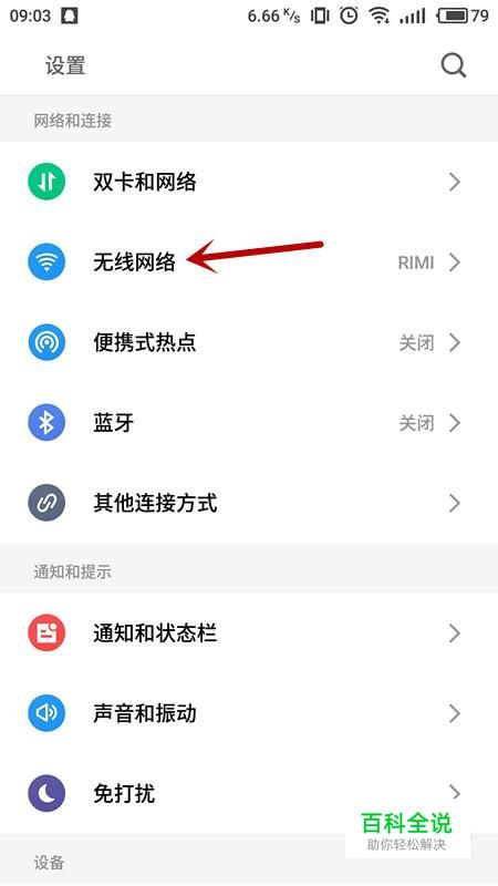进入设置界面后,选择“无线网络”,进入无线网络管理界面。