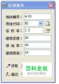 “绘制地块” 功能:依据边界线及地块指标属性,绘制地块。 菜单:“用地”→“绘制地块”。