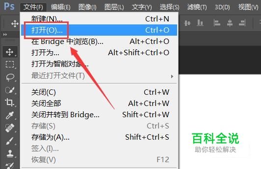在该界面内找到文件菜单,点击文件菜单在其子级菜单里找到打开选项,如图所示: