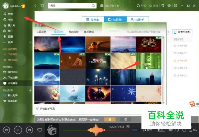 点击背景皮肤,选择竹子,看窗口皮肤变成竹子背景了。