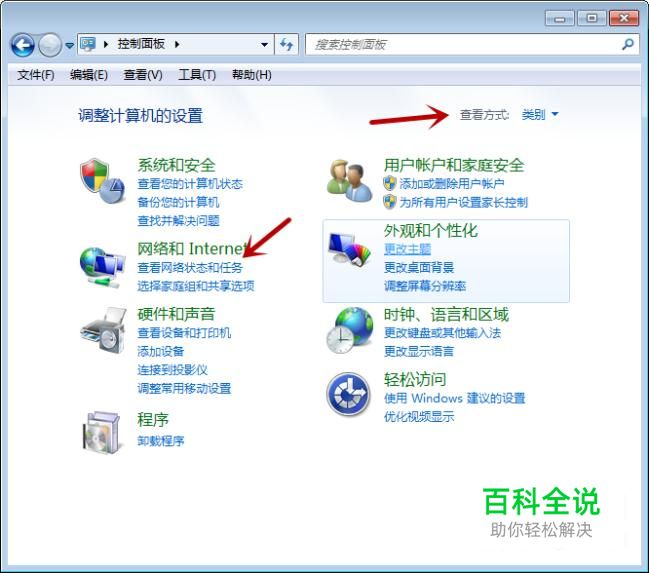 选择“查看方式——类别”,点击“网络和Internet”