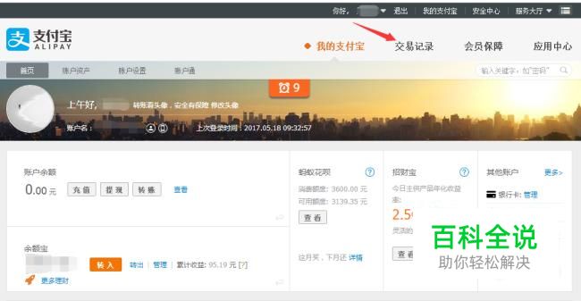首先在支付宝页面,点击交易记录