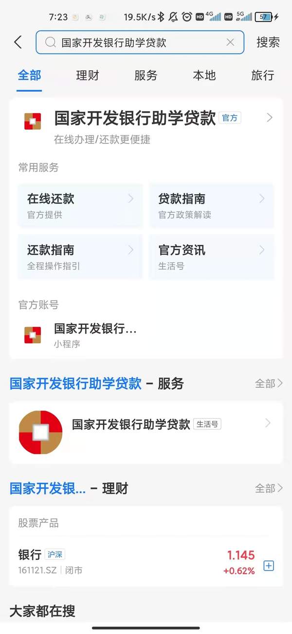 4、登录支付宝APP,通过“国家开发银行助学贷款”生活号或小程序,使用“在线还款”功能还款。