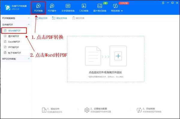 电脑端的话,还是推荐使用相应的转换器进行转换。相关的转换器可以把Word文件转换成其他格式,这款软件目前使用体验还不错,没什么广告,操作也很方便。我们从搜索引擎上搜索这款软件,进入官网下载安装。我们打开软件,映入眼帘的是它的操作界面,它的操作界面比较简介。上方是大功能区,左边是大功能区的细分功能选项,右边是文件操作区。先点击上方的【PDF转换】,在左边点击【Word转PDF】。