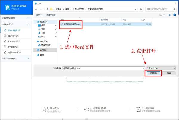 在窗口中选中Word文档,点击打开,把PDF文件添加进来。