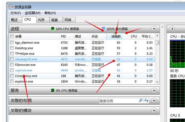 如果难找,就点击资源管理器的线程数,就很容易找到了。