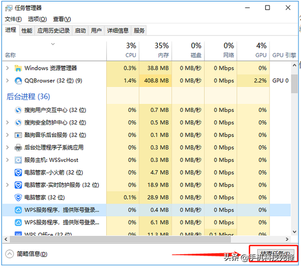 所以我们可以打开【任务管理器】,点击【进程】,选中一些不常用的程序,然后【结束任务】。