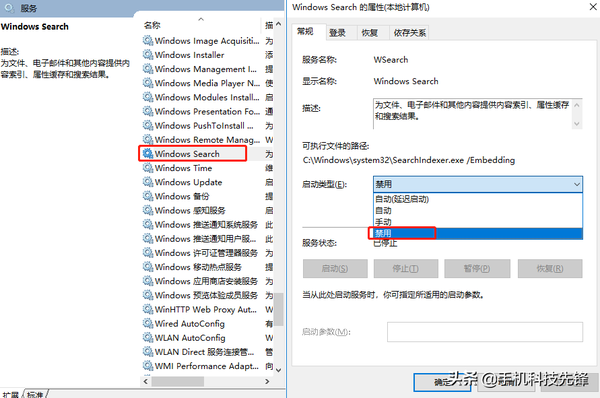 然后再找到“Windows search”,也将其设置为【禁用】模式即可。