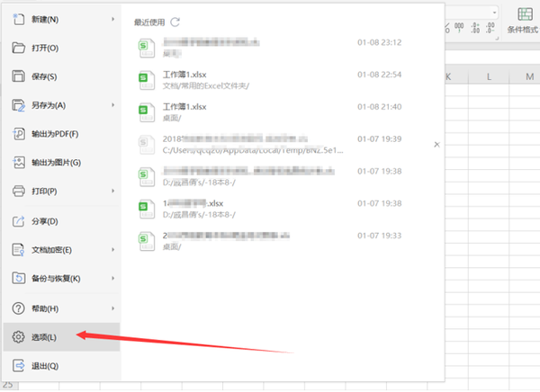 在下拉列表中,我们点击选项,具体操作如下图所示:
