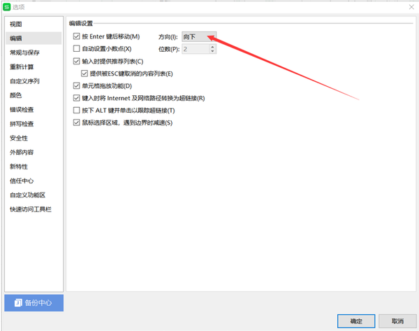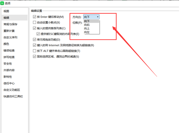 那么这时候我们就会发现,第1个编辑设置就是Enter键的使用,小编的Enter键默认是向下: