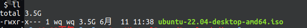 wq@wq-VirtualBox:~/Downloads/iso % ll total 3.5G -rwxr-x--- 1 wq wq 3.5G 6月 11 11:38 ubuntu-22.04-desktop-amd64.iso wq@wq-VirtualBox:~/Downloads/iso % sudo mkdir -p /iso wq@wq-VirtualBox:~/Downloads/iso % sudo mount -o loop ubuntu-22.04-desktop-amd64.iso /iso mount: /iso: WARNING: device write-protected, mounted read-only. wq@wq-VirtualBox:~/Downloads/iso % ll /iso total 42K dr-xr-xr-x 1 root root 2.0K 4月 16 06:08 boot -r--r--r-- 1 root root 2.0K 4月 19 18:23 boot.catalog dr-xr-xr-x 1 root root 2.0K 4月 19 18:21 casper dr-xr-xr-x 1 root root 2.0K 4月 19 18:19 dists dr-xr-xr-x 1 root root 2.0K 4月 16 06:08 EFI dr-xr-xr-x 1 root root 2.0K 4月 19 18:19 install -r--r--r-- 1 root root 26K 4月 19 18:23 md5sum.txt dr-xr-xr-x 1 root root 2.0K 4月 19 18:19 pool dr-xr-xr-x 1 root root 2.0K 4月 19 18:19 preseed lr-xr-xr-x 1 root root 1 4月 19 18:19 ubuntu -> .