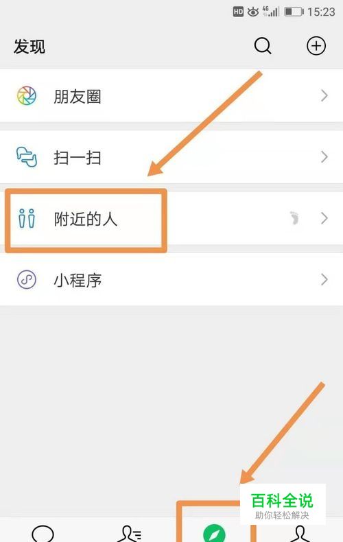 首先打开微信,点击屏幕下方工具栏的【发现】,然后点击【附近的人】。