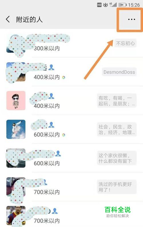 这样就会看到附近人的信息了,然后点击屏幕右上角的功能键【…】。