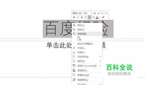 在幻灯片中输入文字并选择后点击鼠标右键,选择设置文字效果选项。