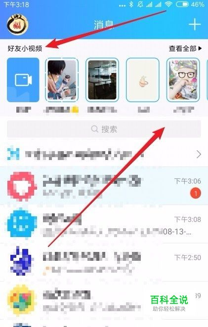 我们先来看一下手机QQ消息列表中,向下滑动屏幕,就会在手机的顶部显示出好友小视频。