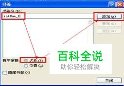需要计算的变量(数字)都需要建立唯一识别的标签,建立标签示例如下 选择需要建立变量的值,如果图中12341,必须是选中状态; 然后选择主菜单中的“插入”——>“书签”,弹出如下图所示: 指定你要设定的标签(变量)名称,如:intNum_1。然后点添加。 这样就把“软件需求”.“3级缺陷”这一单元格的值赋给标签(变量)intNum_1这个名称。 通过以上方式我们建立相应的“4级缺陷”,“5级缺陷”的标签,如下图所示: