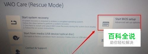 进入了vaio care设置界面,此界面可以使用鼠标点击,点击【Satrt BIOS setup】如下所示