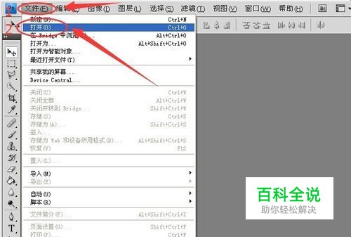 打开安装好的ps软件,并依次点击 —文件—打开—或者快捷键Ctrl+O打开自己准备好的图片。(本人使用的是ps4版本,每个软件版本制作方法流程都是一样的)