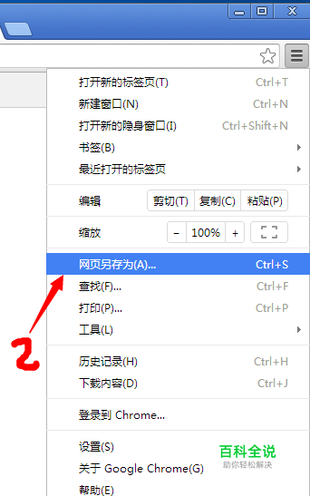 点击“三”图标后,弹出下拉框,选择保存网页,也可以用快捷键 Ctrl+S 来快速进入网页保存