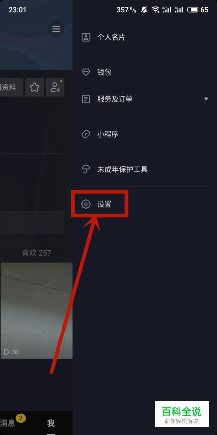 在出现的菜单中选择“设置”,进入下一页面,如图所示。
