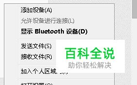 选项→勾选在通知区域显示Bluetooth图标→确定。 注意,有时候关闭了无线开关,也会连接不上蓝牙设备的。同时,蓝牙设备也会有驱动程序软件需要安装。